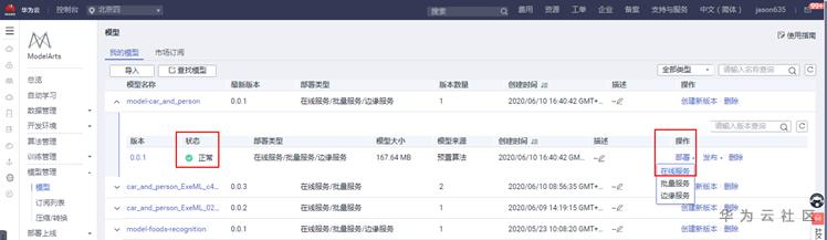 状态变为正常。部署,在线服务