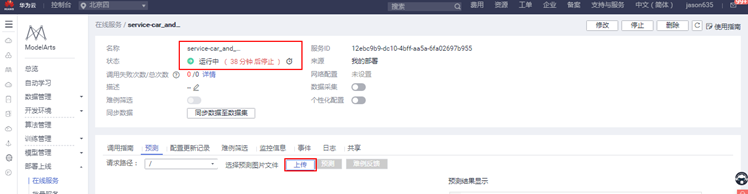 状态变为“运行中”,上传一张图片,预测一下
