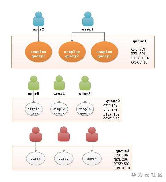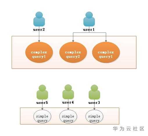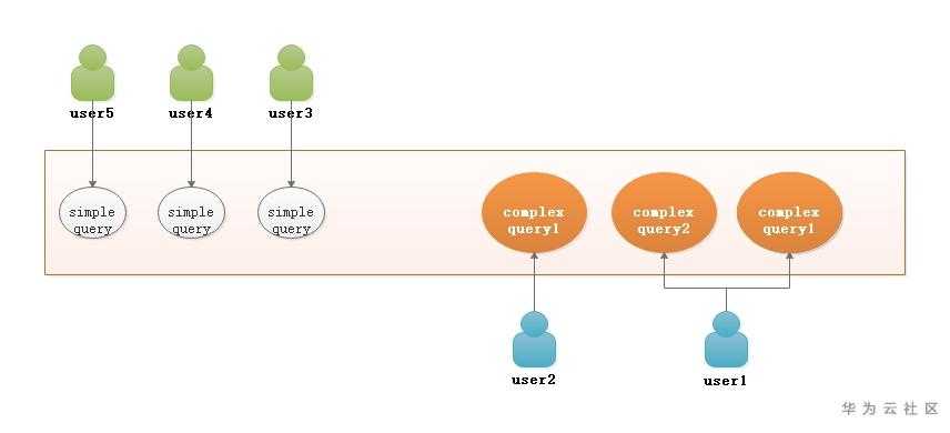 在实际的业务场景中,使用DWS的客户可能会同时使用多个用户同时运行查询作业,这其中有些查询可能会非常复杂,此时如果对数据库资源未做控制,这些复杂作业的查询容易占用大部分的集群资源并长时间运行,从而影响其他查询的性能,使其不得不等待哪些复杂作业执行完成。