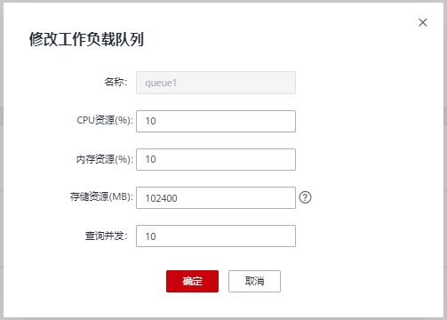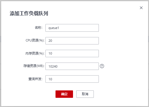 工作负载管理功能以队列为资源承载点,目前可以配置队列的CPU时间片占比、内存占比、并发(复杂查询并发数)以及磁盘空间大小(永久表空间)等资源。