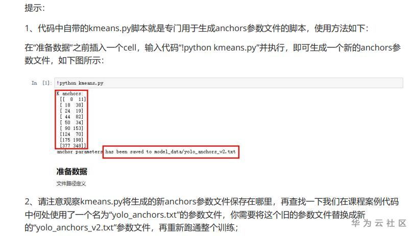 【摘要】 【说明:】这个过程,没有什么特别难的地方。只要按照教学视频中,操作就行了。所以,这里我就直接写作业03的完成过程 按照pdf文档提示部分操作 作业要求: 我做的过程是这样的。打开这个文件,复制源码 把这个代码放到notebook开发环境,IN[1]首行,执行输入代码“!python kmeans.py”并执行,即可生成一个新的anchors参数文件,如下图所示