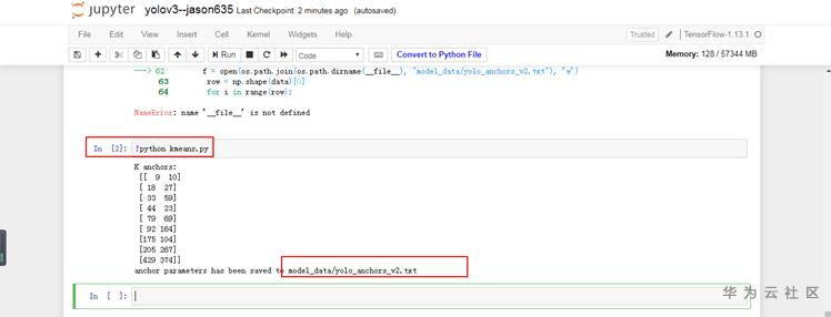 输入代码“!python kmeans.py”并执行,即可生成一个新的anchors参