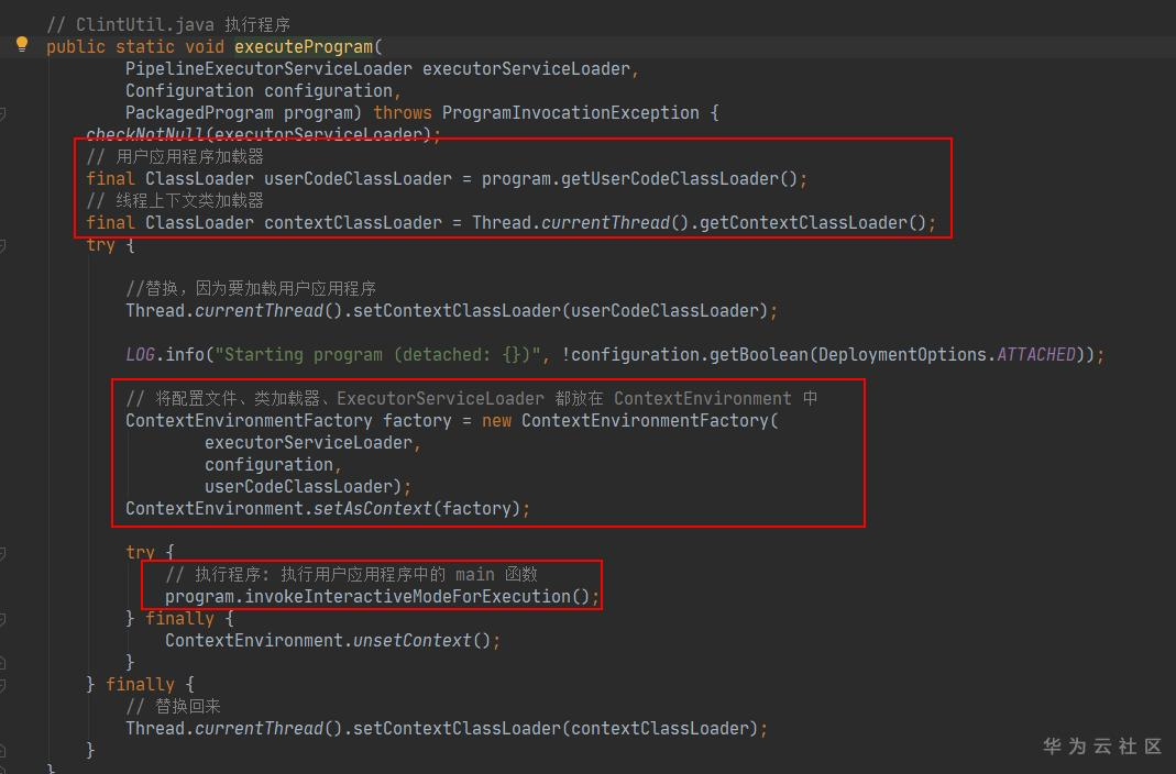 答:在 ./config.sh 中配置了 conf 文件的地址,然后在CliFrontend中加载配置文件;加载完毕的配置会存放在 ExecutionEnvironment的全局变量 contextEnvironmentFactory 中。这个全局变量保存了加载完毕的配置,后续会被用户的应用程序使用。