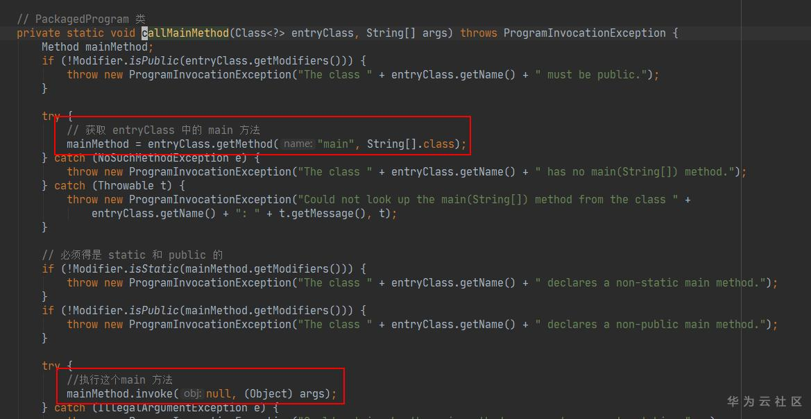 然后从 EntryClass 中利用Java 反射获取 main 方法