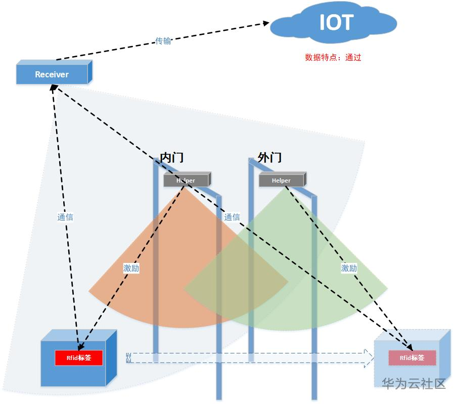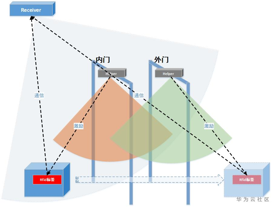 在华为RFID收发分离技术下,需要在库门或者通道内侧和外侧分别部署helper设备,用于激励RFID标签。