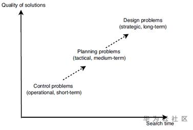 由于组合优化问题再实际问题里面基本都是大规模的,求解时间和求解质量必须有个平衡和折中,文献【1】对此作了一个概要上的分析,具体如下: