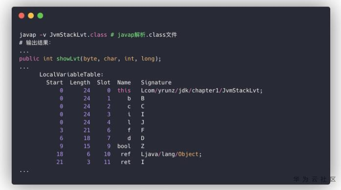 再使用javap命令解析class文件,就可以看到showLvt函数的LVT。