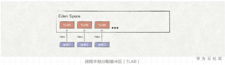 TLAB是一个线程私有的内存空间,在线程初始化阶段JVM就会将其分配在Eden Space上。后续,如果线程需要创建对象,JVM就会优先在该线程的TLAB上进行分配,线程之间的TLAB是相互隔离的,从而避免了使用同步锁的机制,极大地提升了效率。