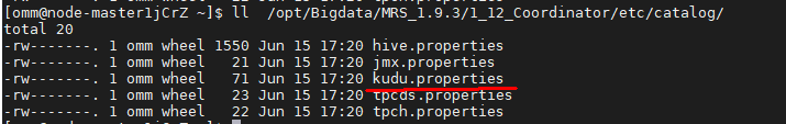 完成该步骤后在/opt/Bigdata/MRS_XXX/XXX_Coordinator/etc/catalog/目录下可以看到生成kudu.properties
