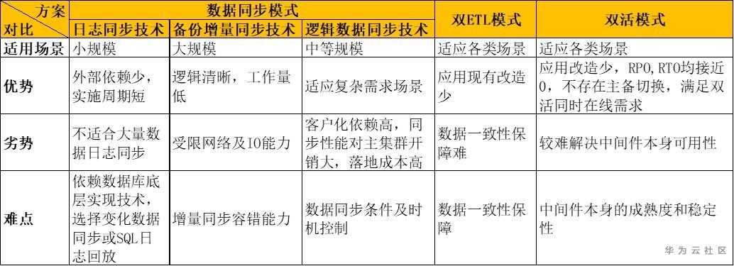 *数据仓库环境下,只需要考虑到表级双活的能力,不建议实施字段级、记录级双活;