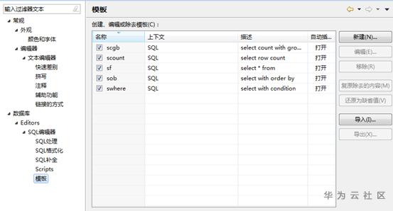 3. 类似DBeaver,提供用户自定义模板的功能,可以将常用的SQL片段保存为模板,双击即可显示在编辑器中。