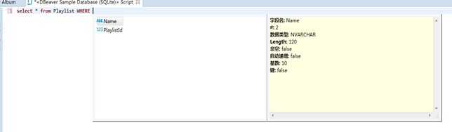双击选中某个表后,右侧panel就会显示出这个表中的所有列信息。