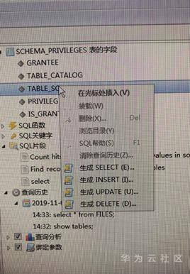 右键某一列,可以直接对这一列生成一些简单的sql语句模板。比如select这一列,update这一列的value等。