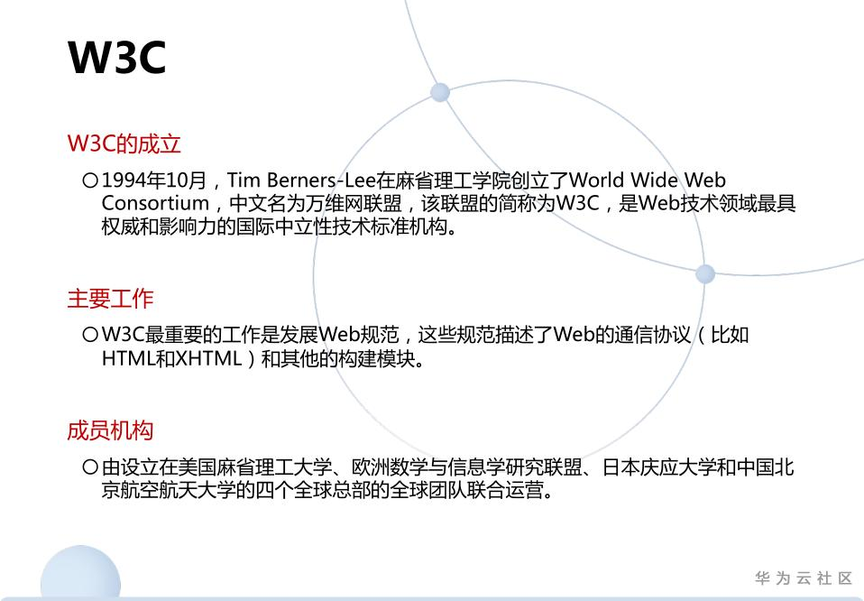 后来W3C成立,这是Web技术领域最具权威和影响力的国际中立性技术标准机构,主要工作时发展Web规范。可以理解为给WWW,建立标准。