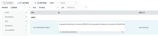 修改HDFS服务端参数,添加自定义参数“io.compression.codec.lzo.class”,值为“com.hadoop.compression.lzo.LzoCodec,com.hadoop.compression.lzo.LzopCodec”