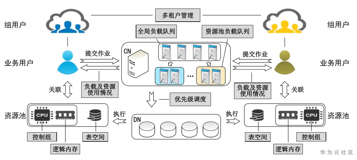 GaussDB 资源管理功能主要分为多租户管理资源隔离、负载管理、优先级控制、多维度资源监控等几个方面。下文将就这几个方面的功能展开具体介绍。