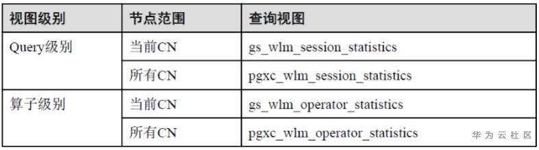 GaussDB提供的详细的资源监控视图对资源使用情况进行记录和监控,查看实时资源占用的情况查看以下视图: