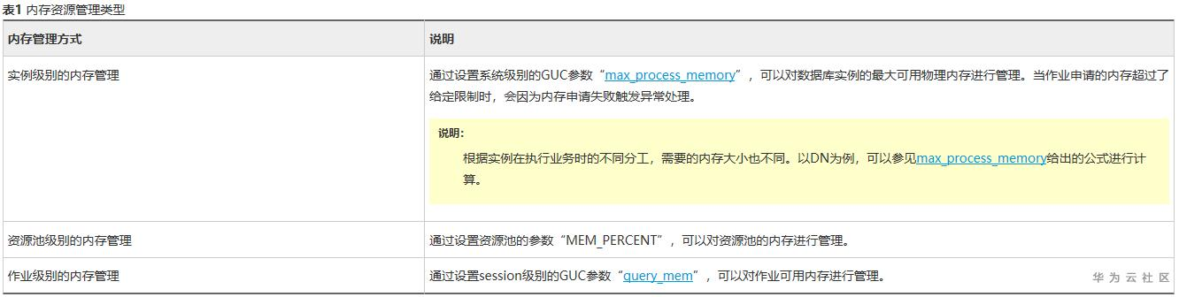 GaussDB对于内存资源的管理分为三级: