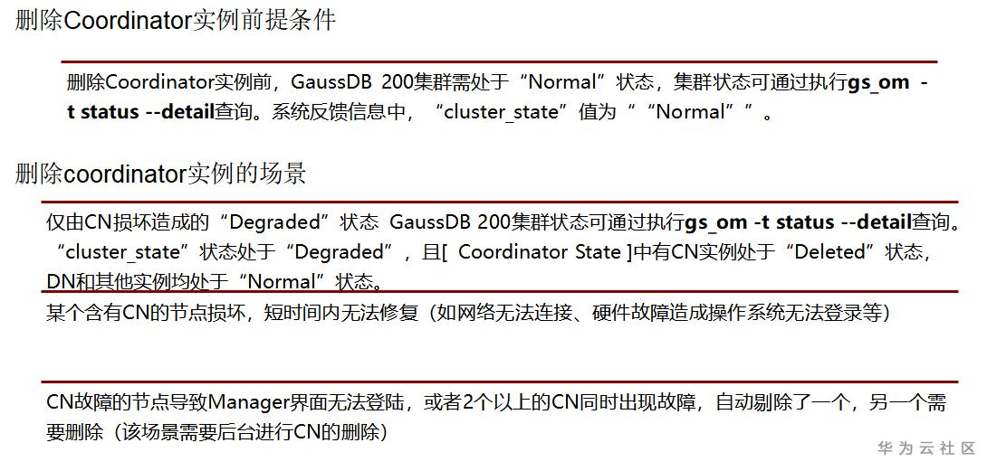 •删除Coordinator实例操作不能与其它运维操作交叉执行。
