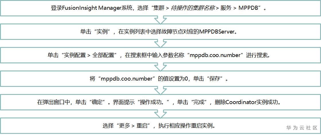 •删除Coordinator实例需要在一个状态正常的物理节点上操作。