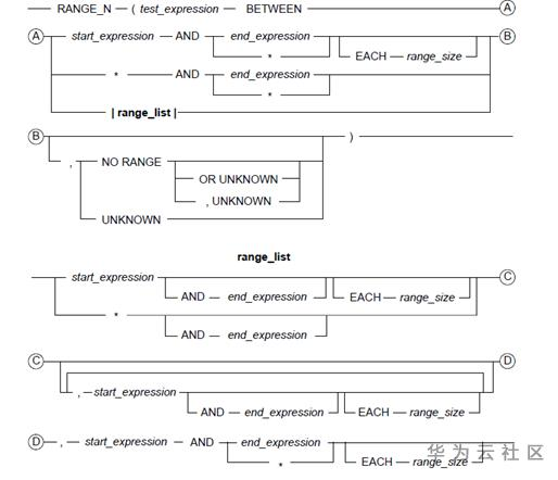 NO RANGE或UNKNOWN处理不会映射到任何指定范围的test_expression,或者当RANGE_N未指定BETWEEN * AND *范围时,test_expression评估为NULL。