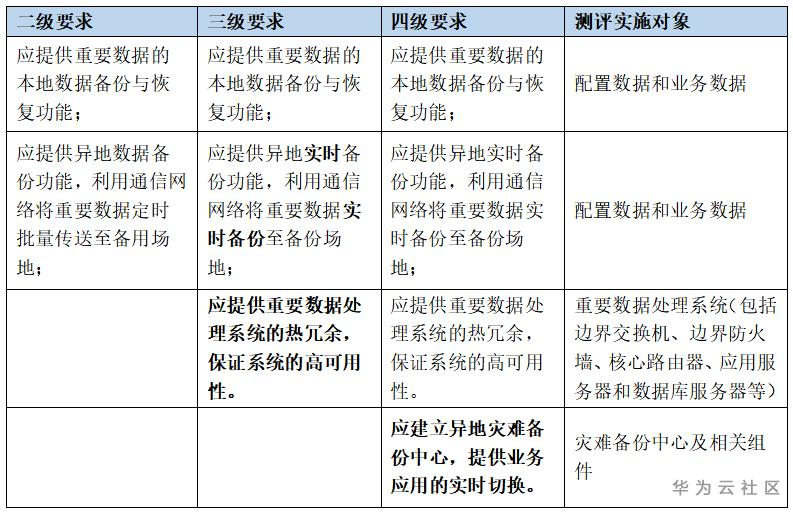 等保2.0的技术要求中对数据的备份与恢复提出了明确的要求,从二级到四级的要求如下: