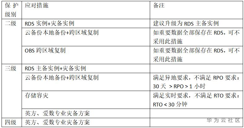 对于四级系统,无论是数据还是应用,都需要具备异地容灾能力。华为云自有云服务可满足第一条和第三条。对于第二条,SDRS所提供的跨可用区容灾方案在距离上存在风险;对于第四条,SDRS容灾方案在RTO上存在不足(小于30分钟,要求是实时)。综合判断,建议选择英方、爱数等专业灾备厂商的方案。