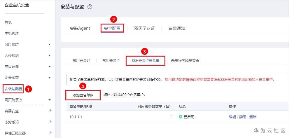 开启SSH登录IP白名单功能,只允许白名单内的IP通过SSH登录到主机,拒绝白名单以外的IP。