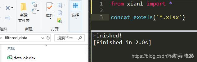 第四步:编辑代码,直接导入模块和方法完成文件数据的合并,代码运行截图如下,这样就是实现了多文件的合并,括号中保留了合并数据的筛选格式,方便进行之后不同格式的Excel文件的合并