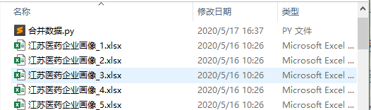 第三步:在欲合并的文件夹下创建一个py文件(比如命名为:合并数据.py),如下