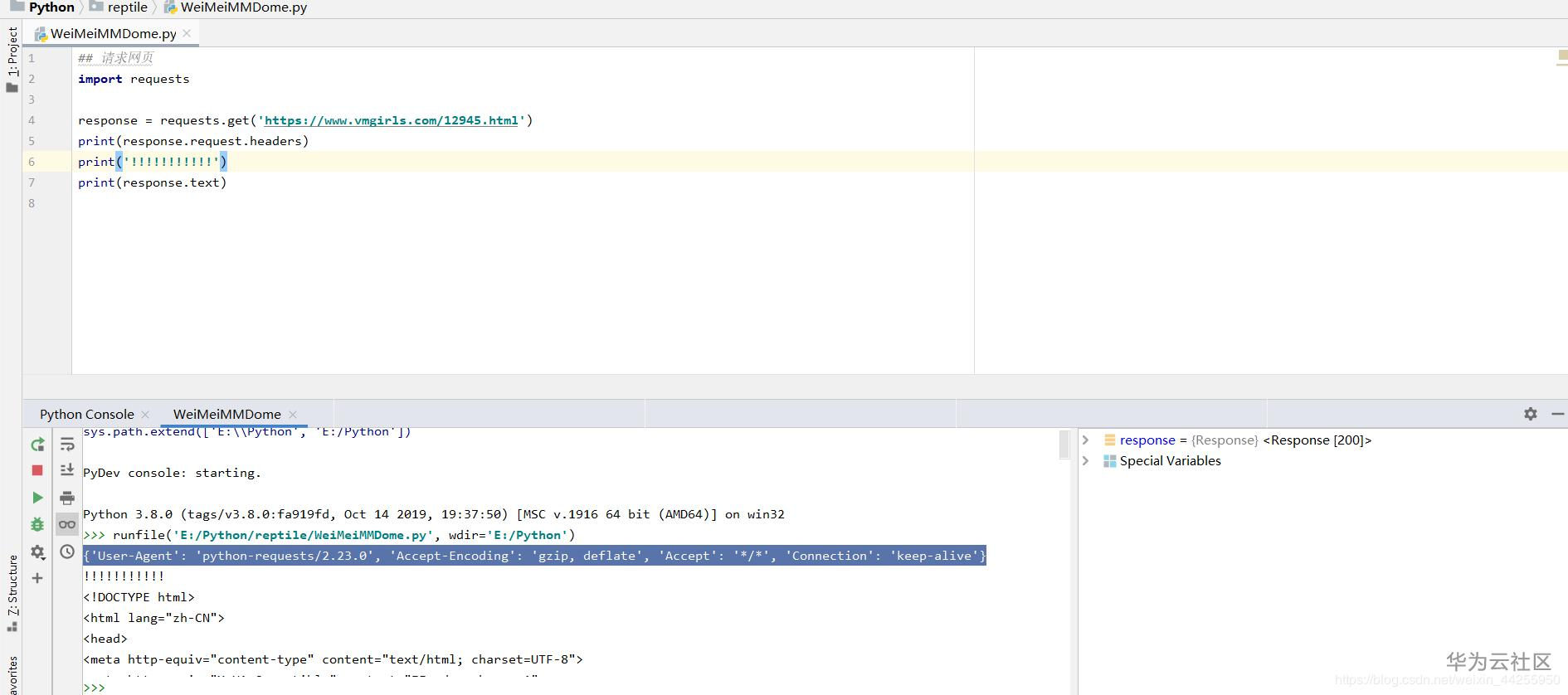8 丨response = requests.get('https://www.vmgirls.com/12945.html')#然后这里就吧上面的headers放进去