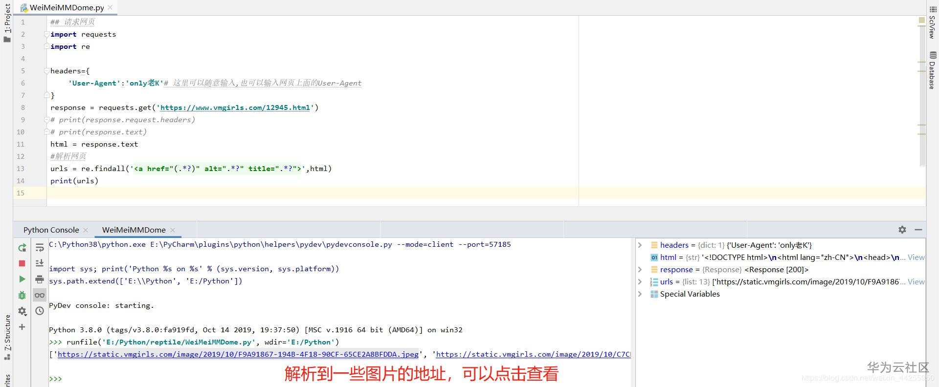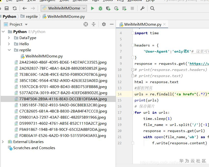 14丨urls = re.findall('<a href="(.*?)" alt=".*?" title=".*?">',html) # (.*?) 意思就是匹配这个数据