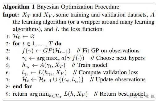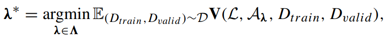 上述公式为超参优化的表达式,其中D表示数据集,L为模型的loss, A为算法,λ表示一组超参,目标即为最优的一组超参。