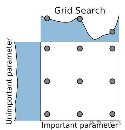 常用的HPO算法有网格搜索(grid search)、随机搜索(random search)和贝叶斯优化(Bayesian Optimization)。如下图所示: