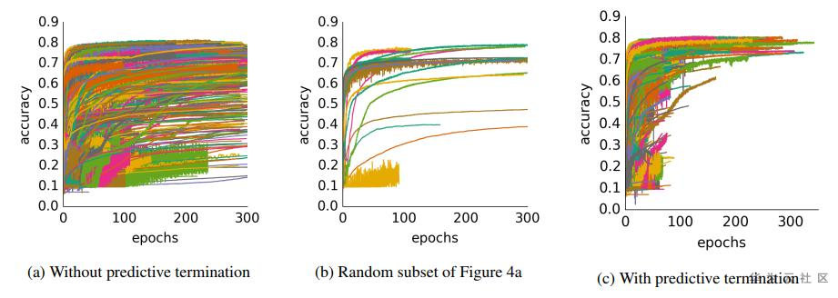 下图是这种方法的一个简要对比图,图a和b是正常的学习曲线,图c是应用了预测终止策略的曲线。