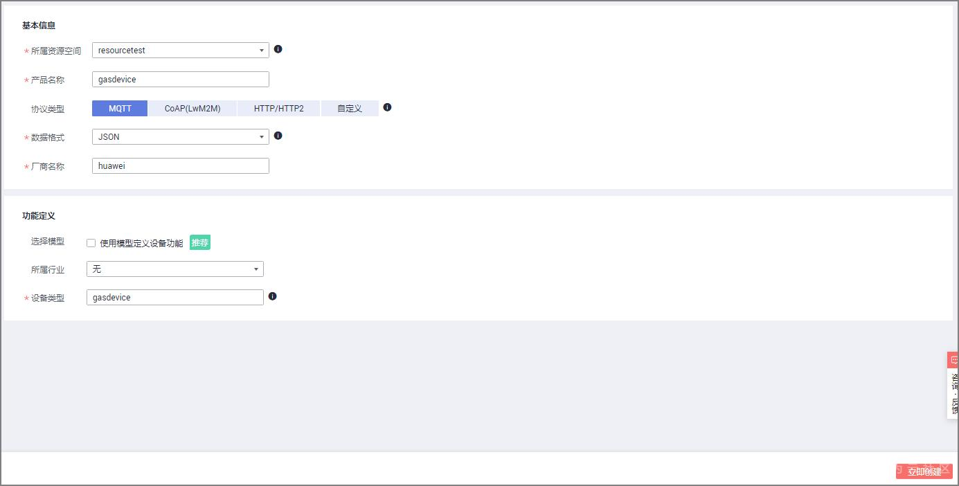 密钥 | 设备密钥,可自定义,不填写物联网平台会自动生成。 |
