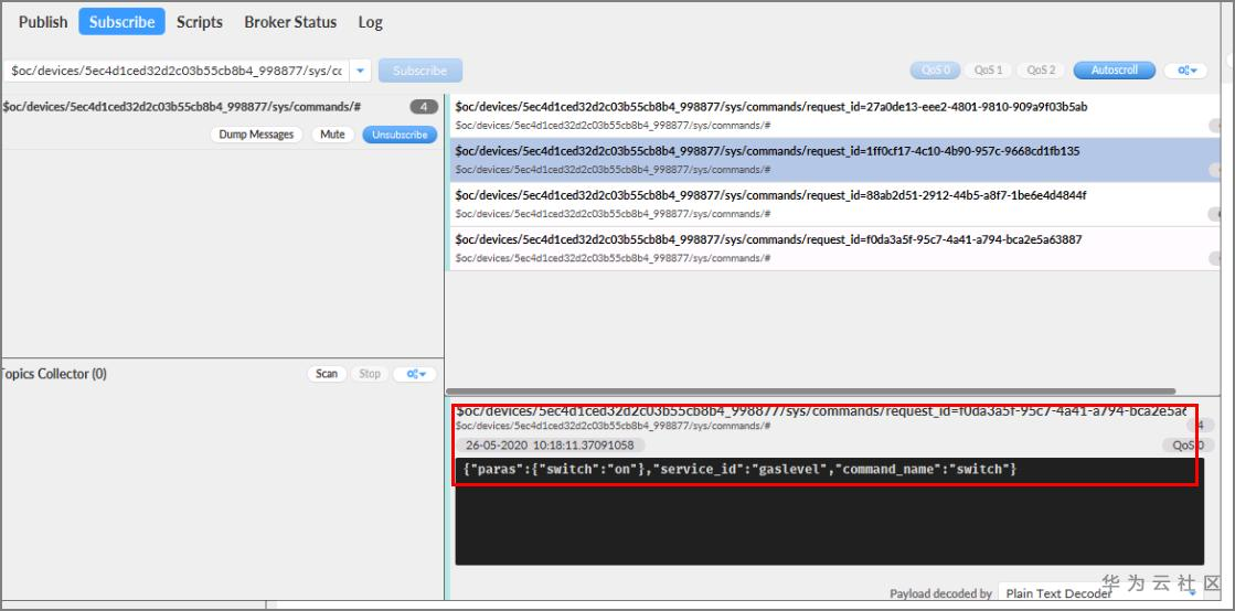 点击“Subscribe”按钮,完成平台命令下发订阅。