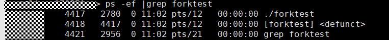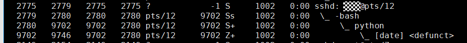 此时可以看到子进程先退了,但是是真的完全没有了么,我们再看一下ps的结果: