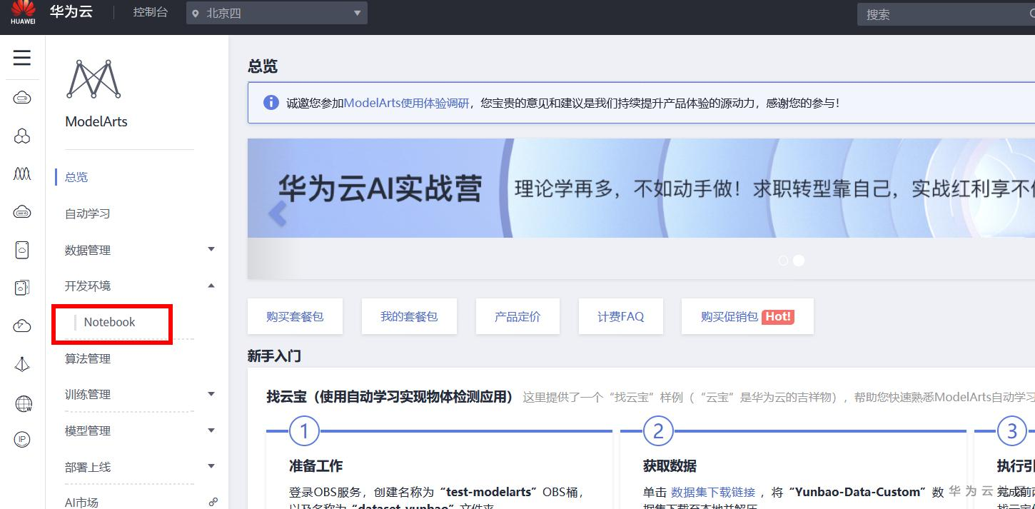 打开ModelArts控制台选择notebook: