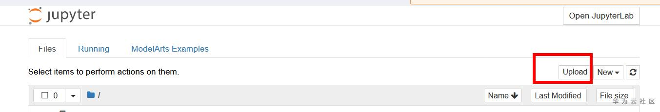 将测试图片先上传到notebook中,如图,点击Upload上传自己的本地图片: