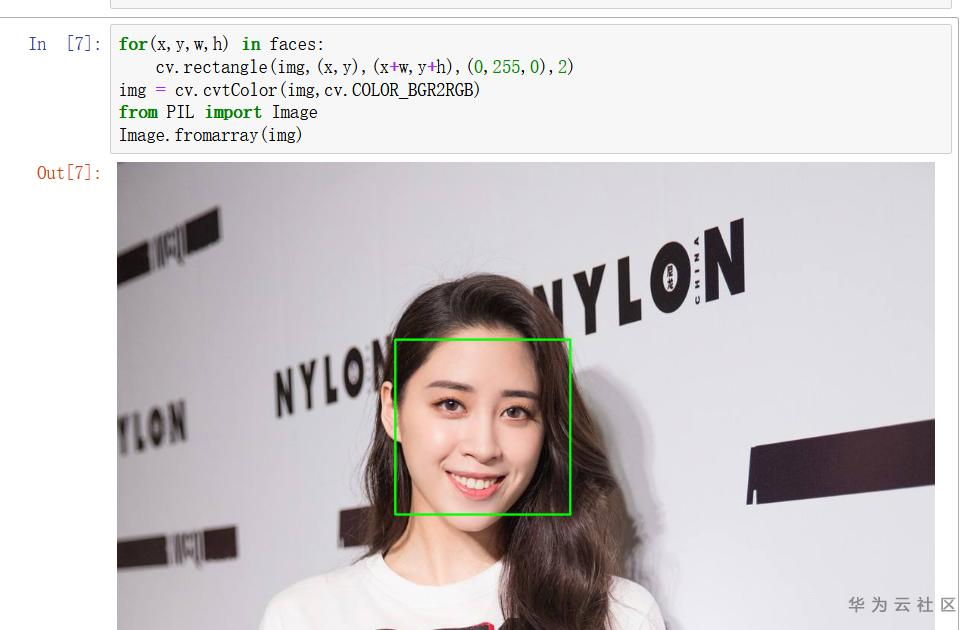 第六行代码中detectMultiScale方法中和第一种方法中介绍的一样,gray就是image,1.3代表scaleFactor,5是minNeighbors。