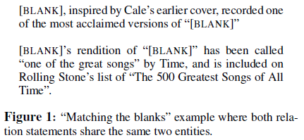 [3] Soares et al. 2019 Matching the Blanks: Distributional Similarity for Relation Learning.