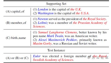 图中展示了FewRel数据集的例子:3 way 2 shot