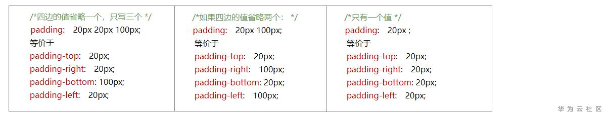 通过CSS,可以分别指定盒模型任意一边(上、右、下、左)的内边距,如上所示,也可以等价简写为