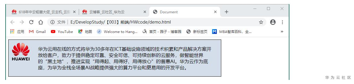 为了在视觉上进一步使div元素和其他的页面隔开,可以通过border设置边框,边框可以有各种不同的宽度、颜色和样式。先设置一种看一下效果