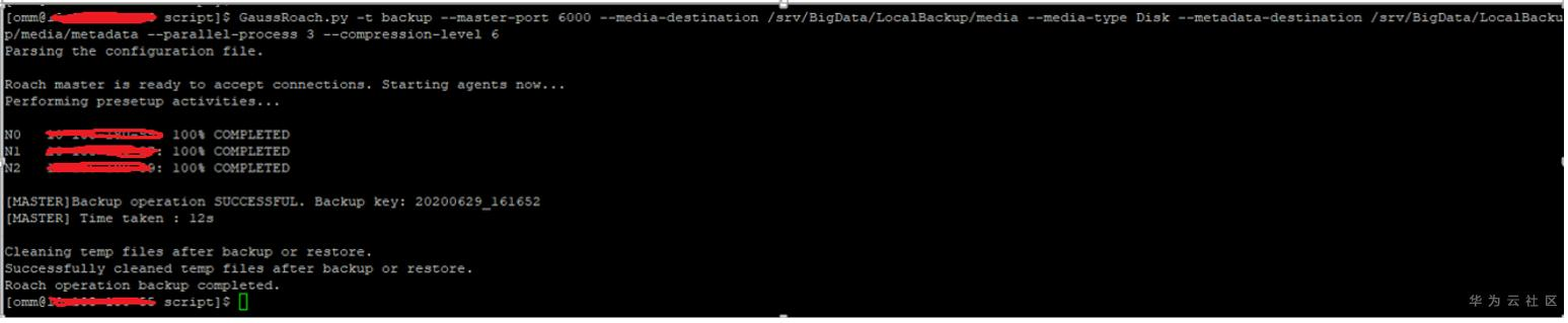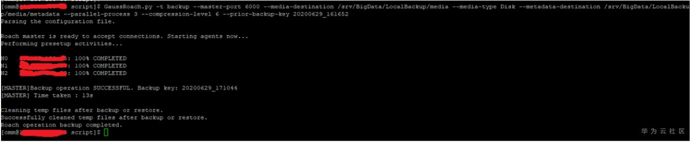 GaussRoach.py -t backup --master-port 6000 --media-destination /srv/BigData/LocalBackup/media --media-type Disk --metadata-destination /srv/BigData/LocalBackup/media/metadata --parallel-process 3 --compression-level 6 --prior-backup-key 20200629_161652