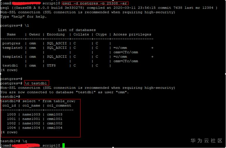 登录Gauss集群任意一台主机,使用集群用户omm登录集群任意一台主机(作为Roach代理主机),启动环境变量