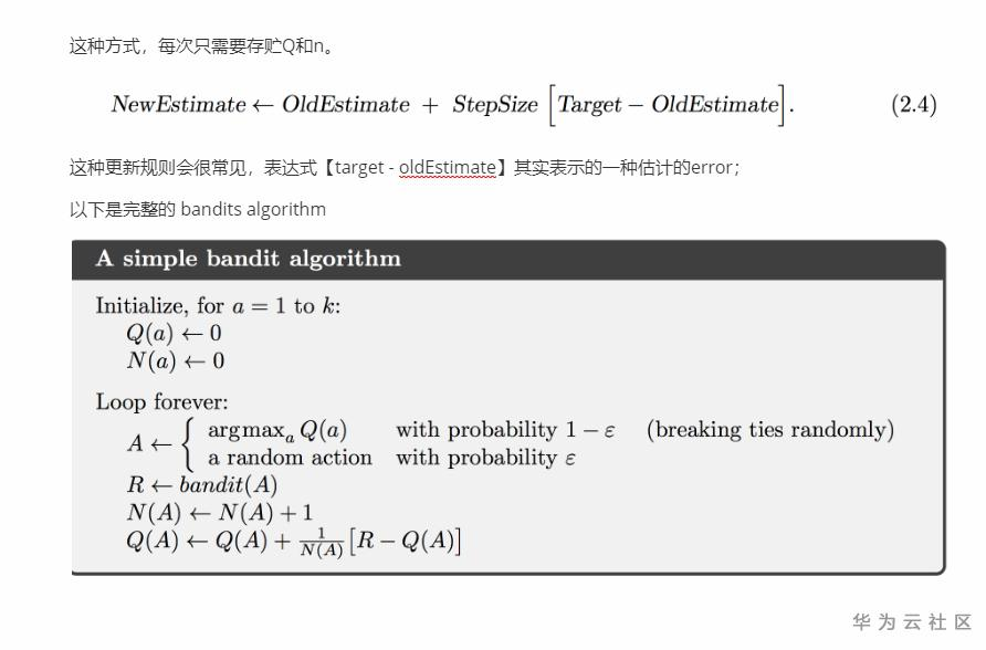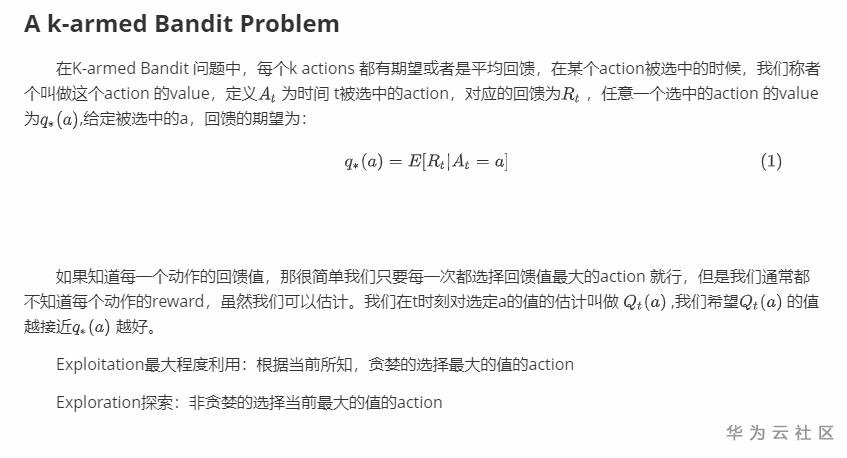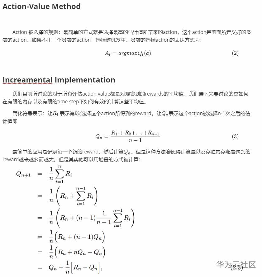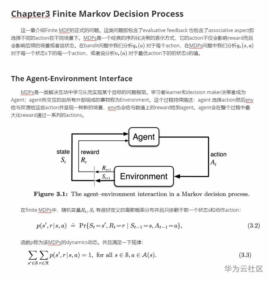 本文对 Reinforcement Learning Introduction 这本书的第2、3章节进行介绍、总结。第二章主要介绍了什么是multi-armed bandits,以及相对应的几种解决方法包括:action-value method, gradient bandit algorithm, associative search等。 第三章主要介绍了Finite Markov Decision Process(有限马尔科夫决策过程)包括其中关键的定义:Environment(环境)、Agent(智能体)、States(状态)、Actions(动作)、Goals(目标)、Rewards(回馈)、Policies(策略)、Value Functions(值函数)等,后续简单介绍了一种求解的方法:Dynamic Programming(动态规划)