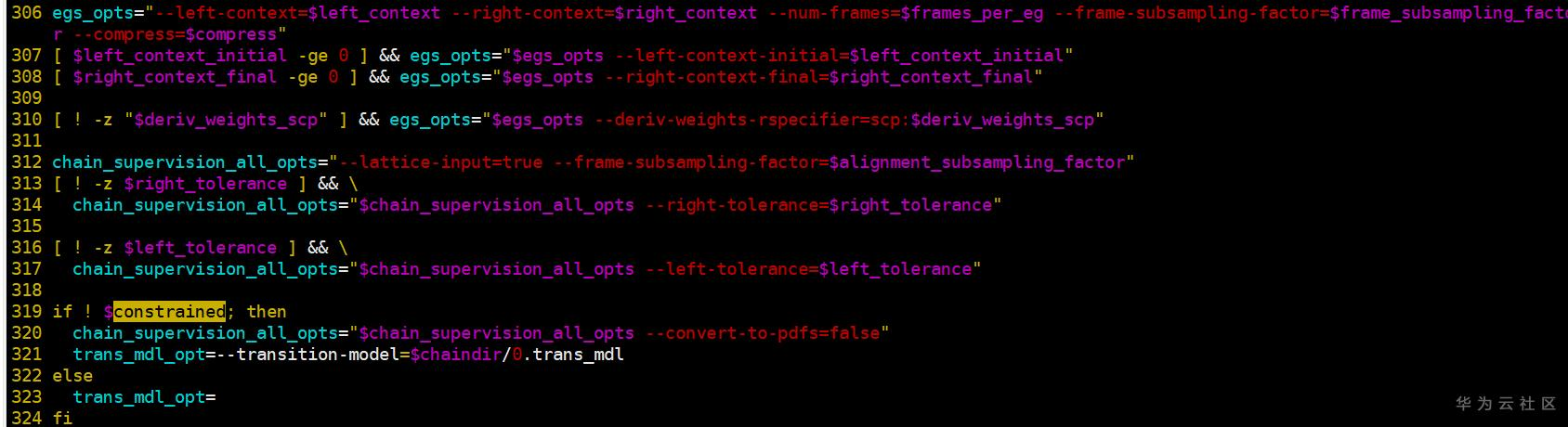 step 5:设置egs和chain的配置信息。值得一提的是constrained参数默认是True。我们后期可以设置为False
