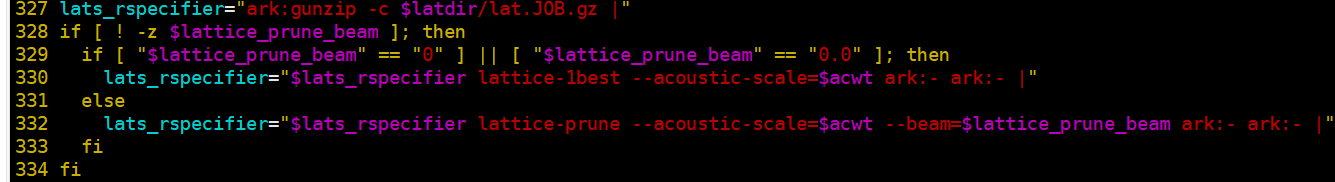 step 6: 设置lattice的情况。默认是用gmm解码得到的完整lattice作为分子,主要是为了防止gmm得到的lattice不准确,有一定的容错机制。但是我感觉可以用剪枝后的结果,以提供更加准确的信息。